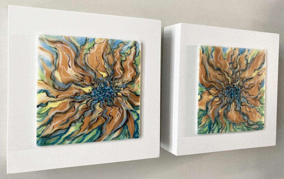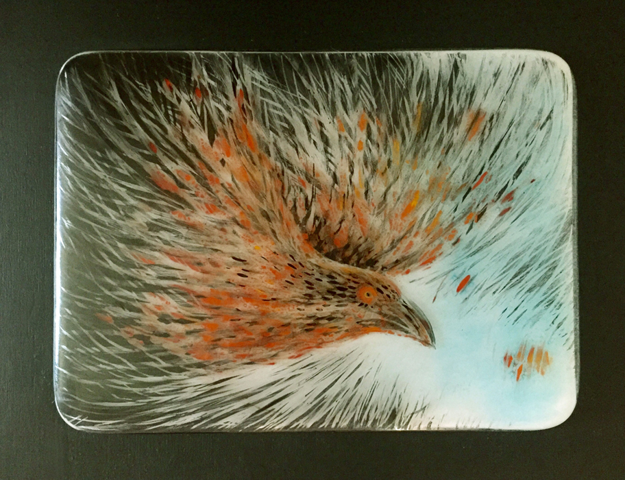 This past winter I spent some time experimenting and practicing with a new medium, glass enamels. I painted on top of the glass, on the back of the glass, and on both front and back on one, went a little CooCoo actually. Lots learned and some frustrations but all worth it in the end. All these are fired in a kiln at around 1165f, I have yet to try and fuse these enamels between layers of glass, that’s will be next! All these are showing at the Rural Routes exhibit at the Cre8ery Gallery in Winnipeg Mb till May 11th, 2021 https://www.facebook.com/events/446912109725257 http://www.cre8ery.com/